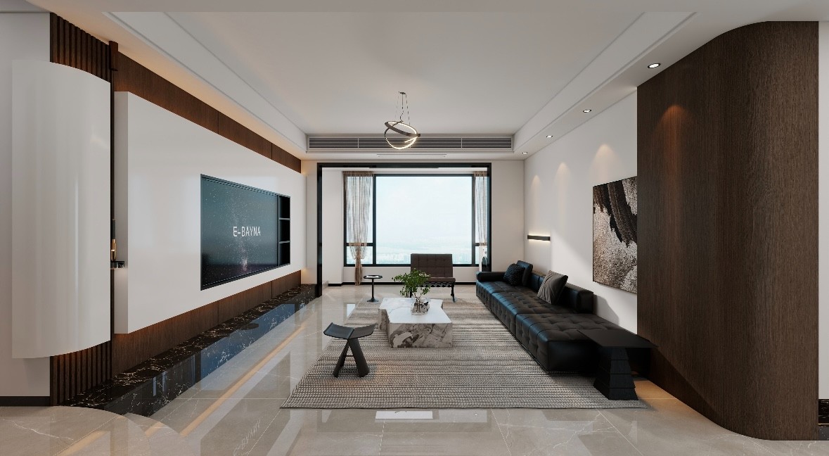 客厅整体空间以灰色系为主,遵循简约的风格。