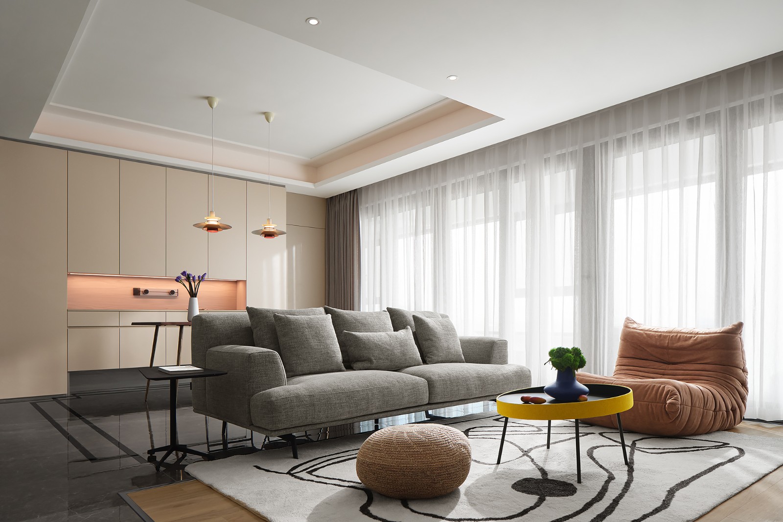 亮黄色边几点缀其中,为室内增添几分活力,丰富着空间色彩层次.