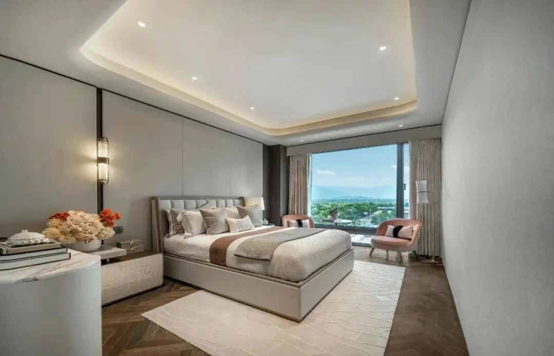 蓝天白云的天际线,配合辽阔城市美景,给人更舒畅的居家体验。